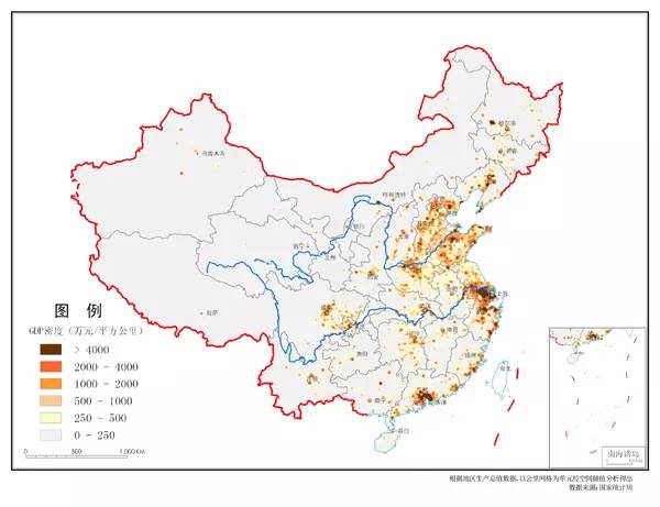 我國地均地區(qū)生產(chǎn)總值最高的地區(qū)主要分布在河北、山東、江浙及沿海地區(qū),地均地區(qū)生產(chǎn)總值高于2000萬元/平方公里,但分布不到中國國土面積的1/10。廣大的中部地區(qū)、西北部及西南一帶地均地區(qū)生產(chǎn)總值較低。推進西部大開發(fā)、中部崛起以及振興東北形勢依然緊迫。
