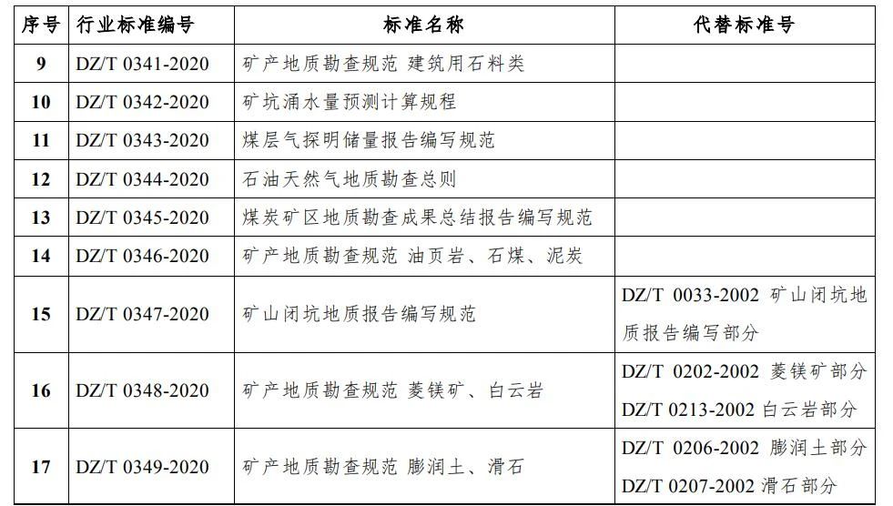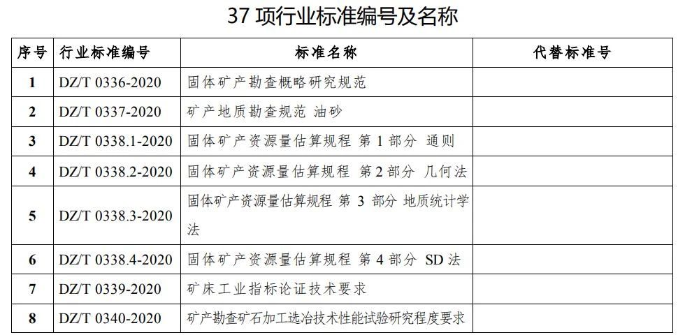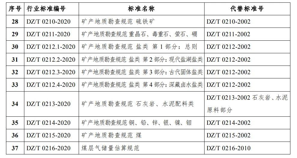 自然資源部關(guān)于發(fā)布《固體礦產(chǎn)勘查概略研究規(guī)范》等46項(xiàng)行業(yè)標(biāo)準(zhǔn)的公告